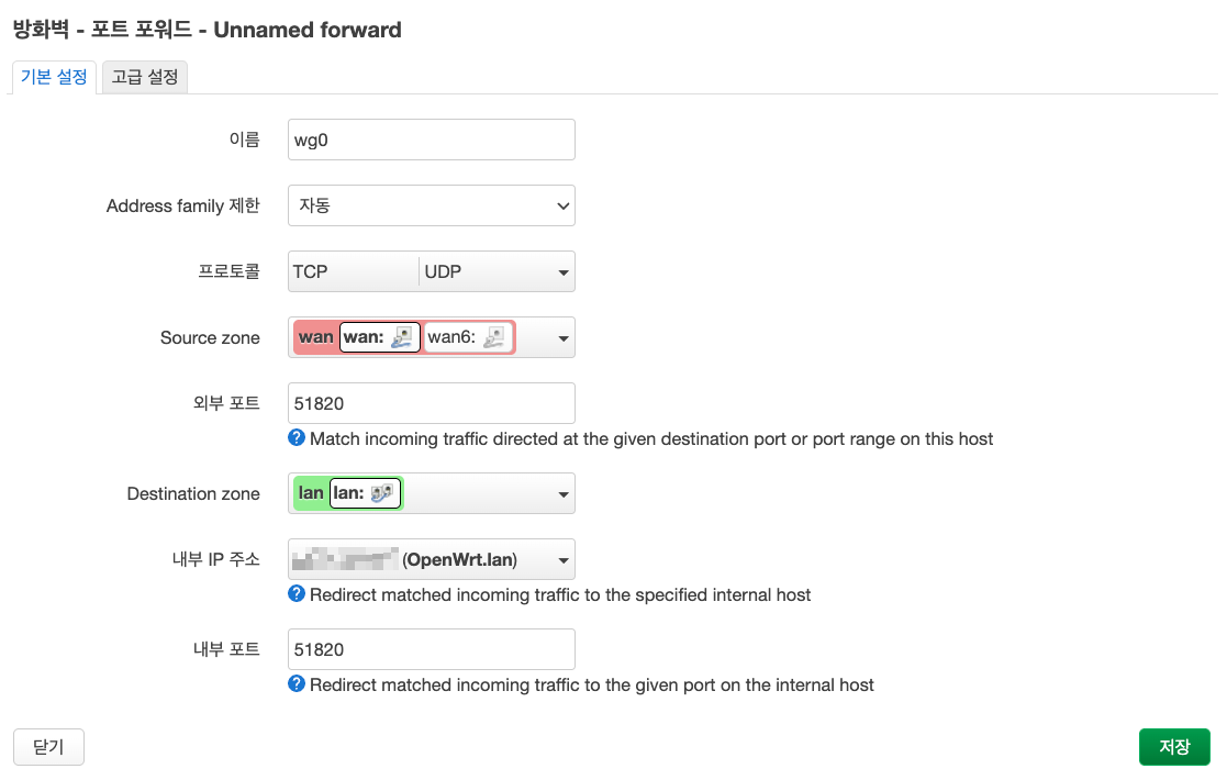 2. 접근포트 51820 (기본 값)